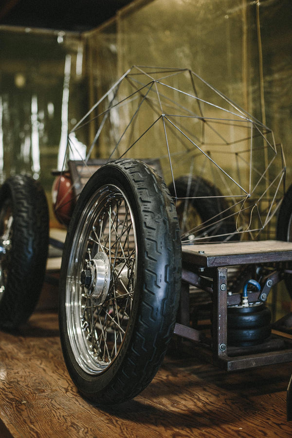 In his studio on the decommissioned Alameda Naval Base, Shawn creates diverse, visually arresting sculptures that are often designed to invite (and withstand) audience interaction. Using both large-scale machinery and more traditional tools, he brings a meticulous eye to his work—a product, we’d venture to guess, of his long history with cars. Whether you’re talking to Shawn or admiring one of his incredible feats of engineering and artistry, what’s hard to ignore is the obvious relish with which he approaches his work, and, by extension, his life—maybe that’s just another holdover from his childhood.